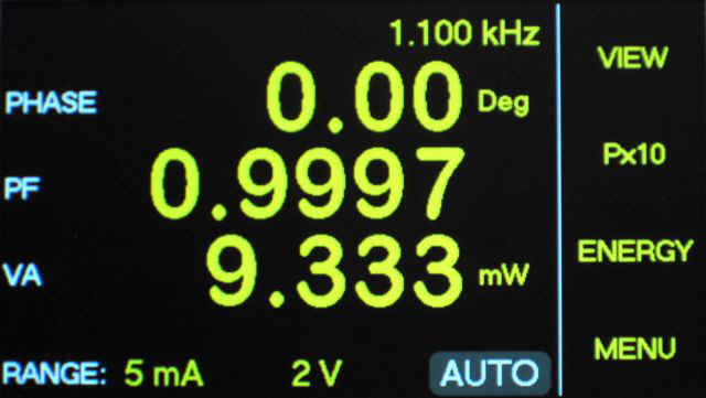 ?以功率和伏安數(shù)的比值作為功率因數(shù)。它的范圍是從0到±1.0000,而且伏安乘積大于滿量程的7.5%時(shí),功率因數(shù)的分辨率為0.0001。當(dāng)伏安乘積下降時(shí)功率因數(shù)的分辨率也會(huì)下降。當(dāng)頻率低于250kHz時(shí)功率因數(shù)的是±0.002 ±10,當(dāng)頻率從 250kHz 到500kHz時(shí)功率因數(shù)的不確定性為±0.004 ±20個(gè)字,當(dāng)頻率從 500kHz 到1000kHz1)時(shí)功率因數(shù)的不確定度為±0.008 ±40個(gè)字。