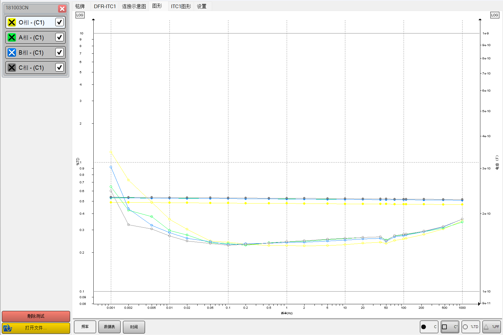 北京康高特儀器設(shè)備導(dǎo)讀:2024年3月中旬,康高特使用MEGGER IDAX300變壓器抗干擾絕緣診斷分析儀,在云南變壓器電氣股份有限公司對110kV 變壓器高壓側(cè)套管ABC及中性點四根套管進(jìn)行絕緣狀況試驗。